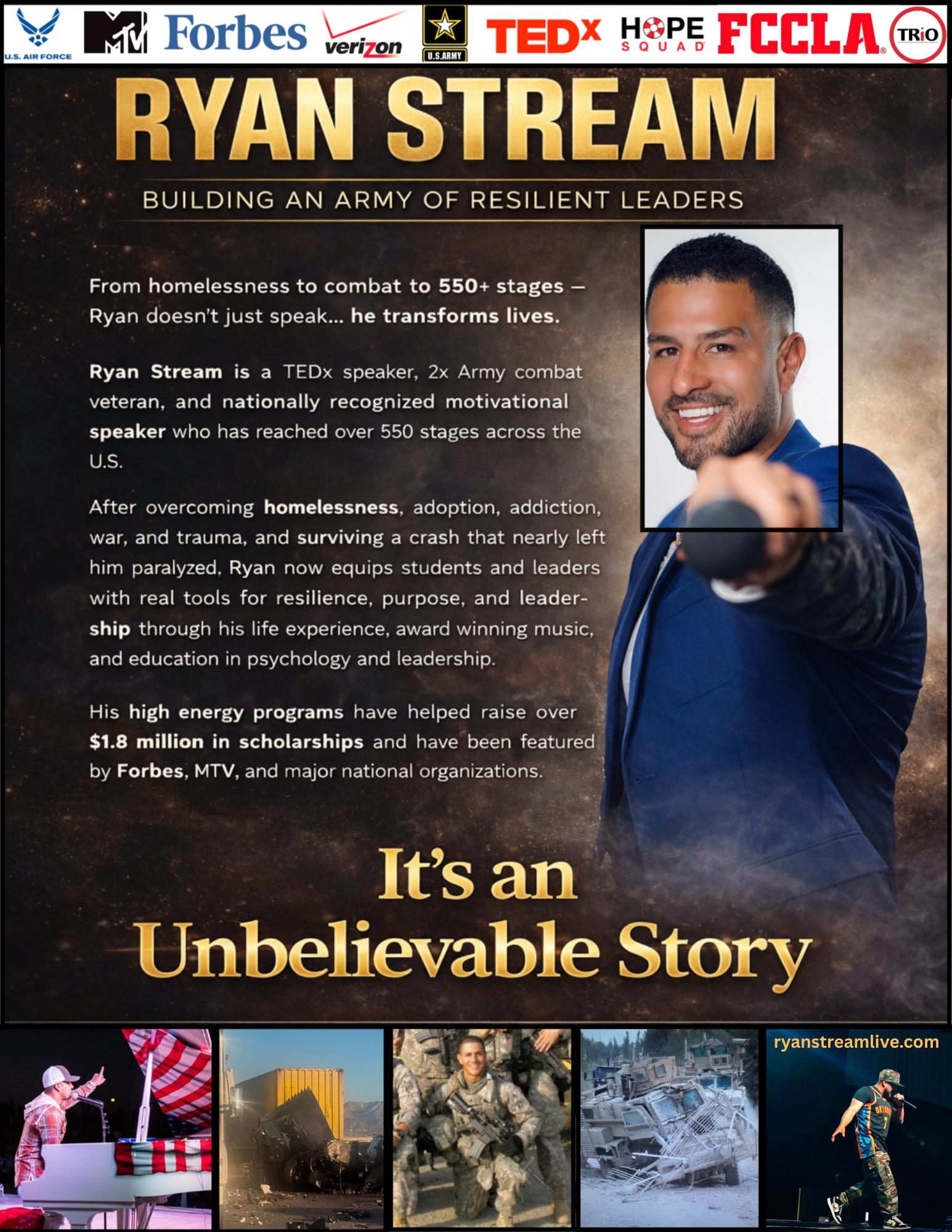 🔥 If you’re looking for Mr. Energy, Ryan Stream is your guy. He doesn’t just stand on stage - he delivers a powerhouse performance packed with actionable steps your audience can use right away. Ryan blends unforgettable music and raw storytelling with the 5 psychology-backed reasons people change, creating a keynote that hits both the heart and the mind. This is why he’s become one of the most in-demand speakers in the country today.
